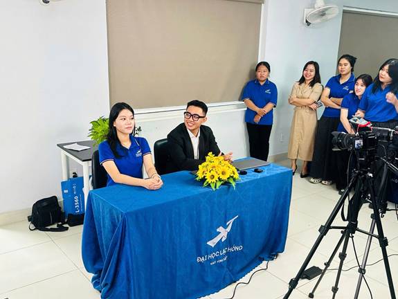 Điểm nhấn nổi bật của buổi sinh hoạt là phần thực hành livestream trực tiếp. Sinh viên được chia nhóm và phân công vai trò cụ thể như người dẫn livestream, người hỗ trợ kỹ thuật và người quản lý nội dung. Hoạt động này giúp sinh viên từng bước vượt qua tâm lý e ngại khi đứng trước ống kính, rèn luyện sự tự tin, khả năng giao tiếp và xử lý tình huống linh hoạt trong quá trình lên sóng.