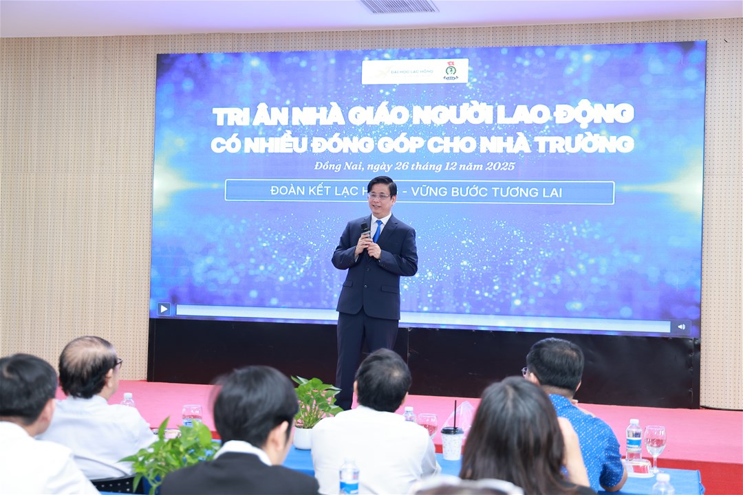 Trong khuôn khổ Hội nghị Tổng kết hoạt động Công đoàn năm học 2024 – 2025, sáng ngày 26/12/2025, Công đoàn Trường Đại học Lạc Hồng đã tổ chức Lễ tri ân Nhà giáo, Người lao động (NGNLĐ) có nhiều năm đóng góp cho sự phát triển của Nhà trường.