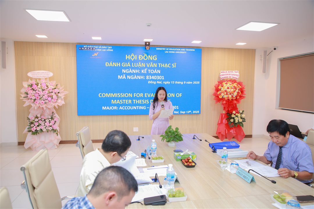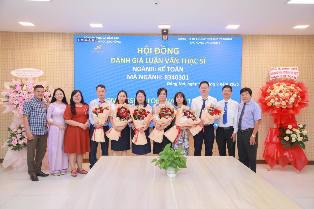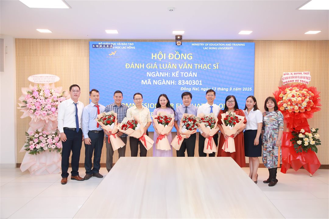 Ngày 13 tháng 09 năm 2025, tại phòng họp cơ sở 1 của Trường Đại học Lạc Hồng (LHU), 06 học viên ngành Kế toán đã hoàn thành và bảo vệ luận văn thạc sĩ của mình. Buổi bảo vệ diễn ra trong không khí trang trọng và đầy tính học thuật, đánh dấu một bước ngoặt quan trọng trong hành trình học tập và nghiên cứu của các học viên.