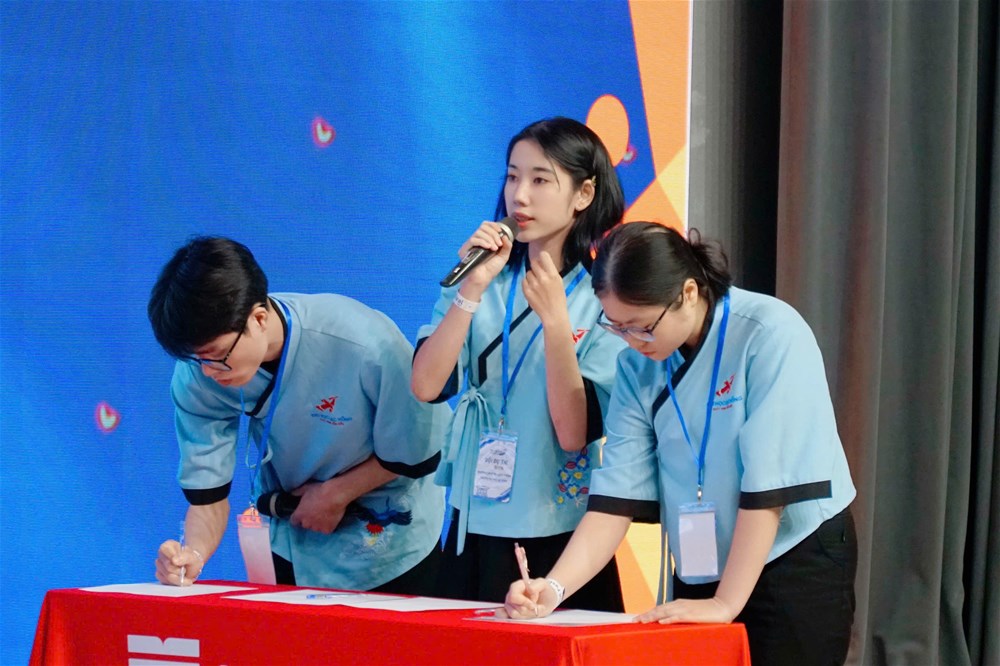 Sinh viên Dương Huỳnh Bảo Trân tại Cuộc thi Tranh biện tiếng Hàn năm 2024