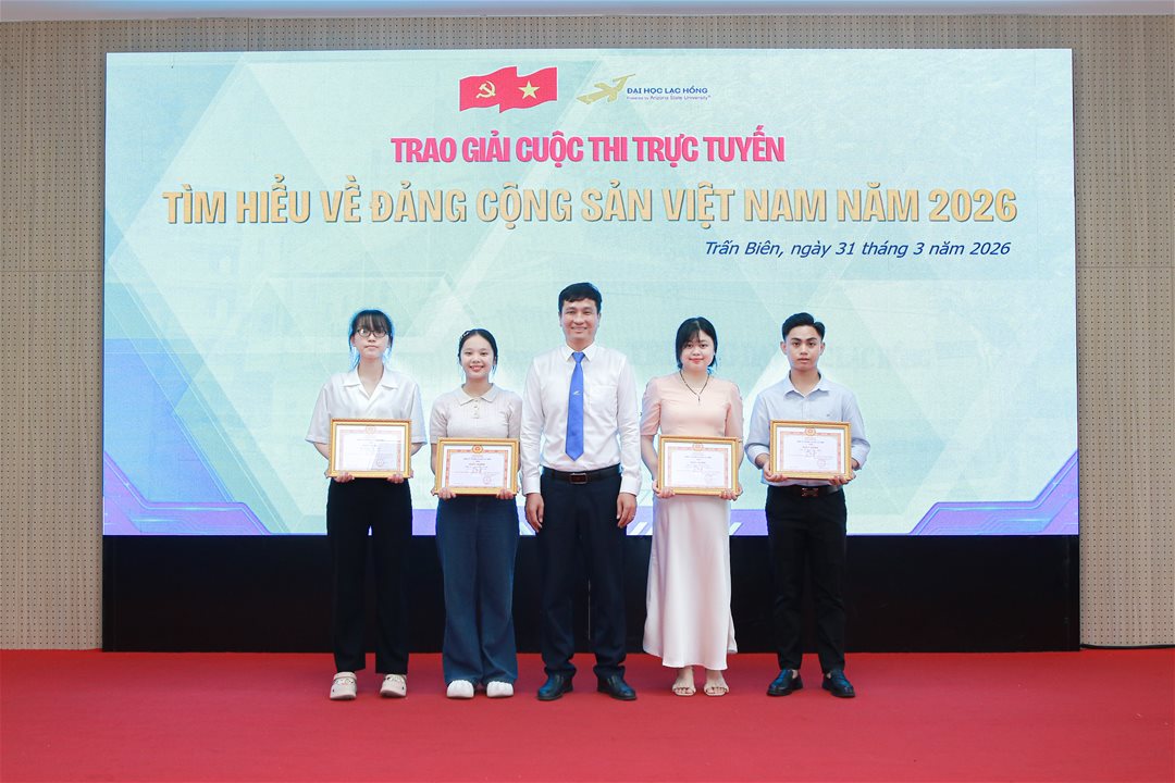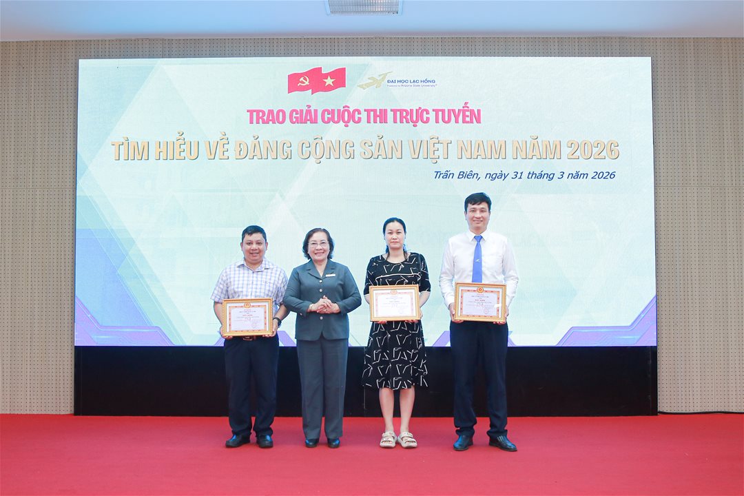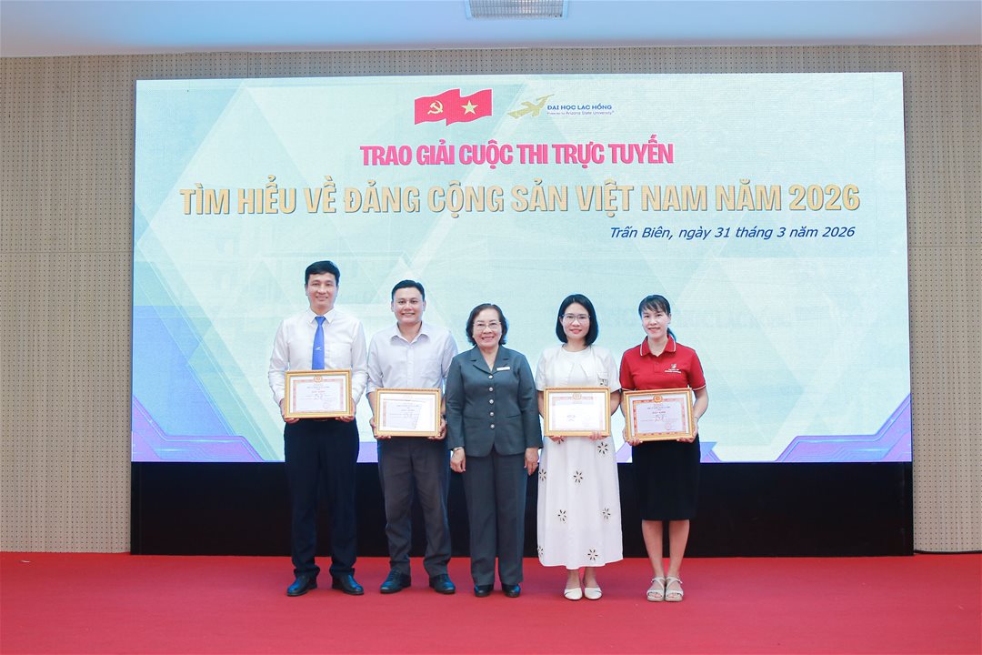 Chào mừng kỷ niệm 96 năm Ngày thành lập Đảng Cộng sản Việt Nam (03/02/1930 – 03/02/2026), hướng tới kỷ niệm 51 năm Ngày Giải phóng miền Nam, thống nhất đất nước (30/4/1945 – 30/4/2026). Sáng ngày 31/3/2026, tại Hội trường A301, Cơ sở 1, Đảng ủy Trường Đại học Lạc Hồng đã tổ chức Lễ khen thưởng Cuộc thi trực tuyến tìm hiểu về Đảng Cộng sản Việt Nam năm 2026.