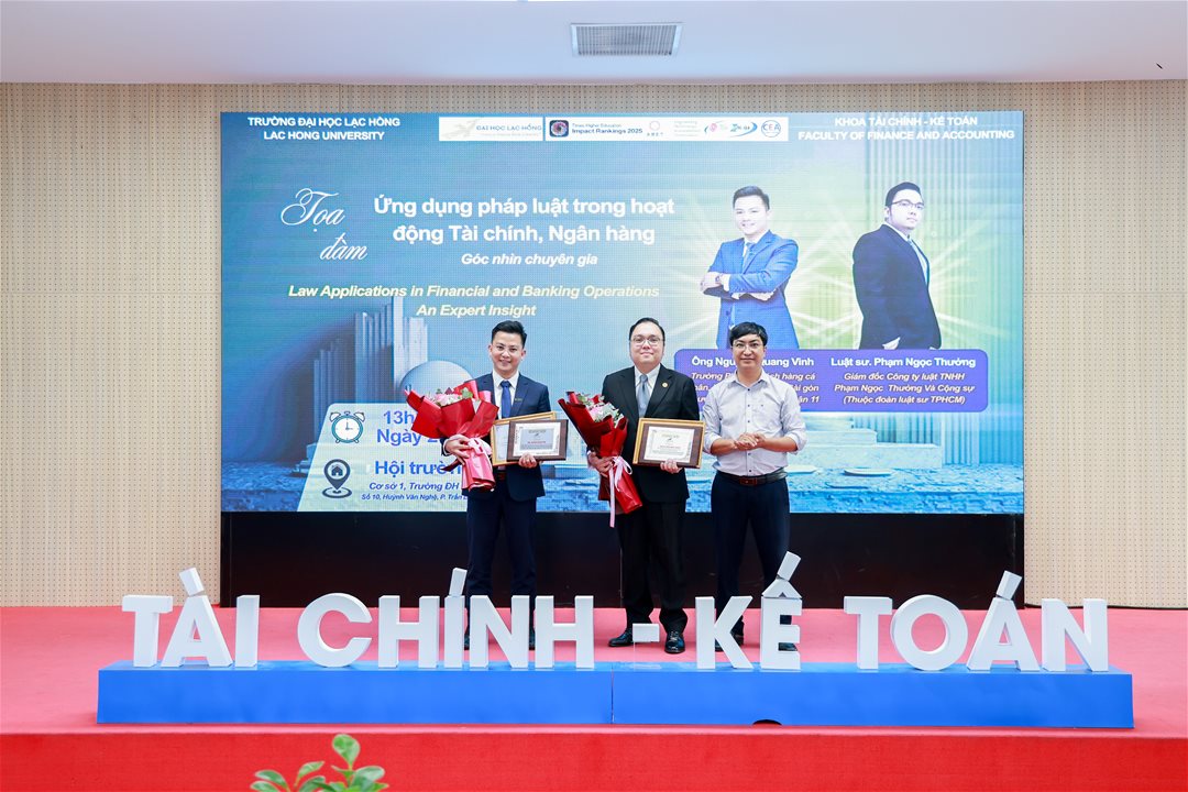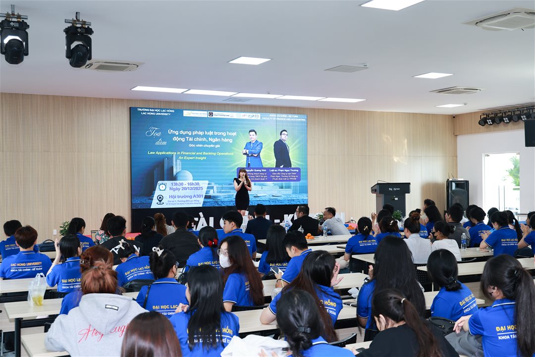 On the afternoon of December 20, 2025, at Hall A301 – Campus 1, Lac Hong University, the Faculty of Finance and Accounting successfully organized a seminar entitled “Application of Law in Financial and Banking Activities: An Expert Perspective.” The event attracted the participation of numerous lecturers, students majoring in Finance and Banking, and invited professional guests.
