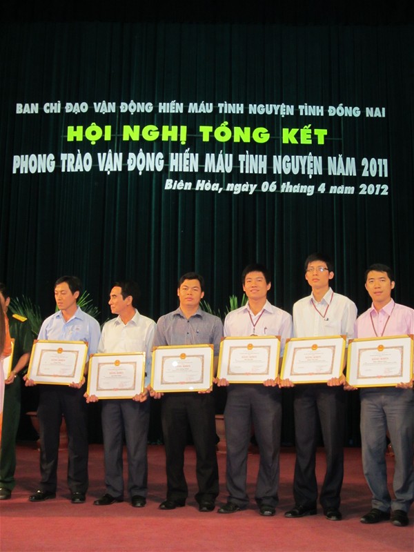 The Dong Nai province’s Steering Committee of the Voluntary Blood Donation Campaign on April 6 held a ceremony to review its blood donation campaign in 2011 at the provincial Conference and Event Center. Attending the ceremony was Vice Director of Cho Ray Regional Blood Transfusion and Haematology Centre Le Hong Anh and Vice Chairman of provincial People’s Committee, Head of provincial Steering Committee on Voluntary Blood Donation Nguyen Thanh Tri.
