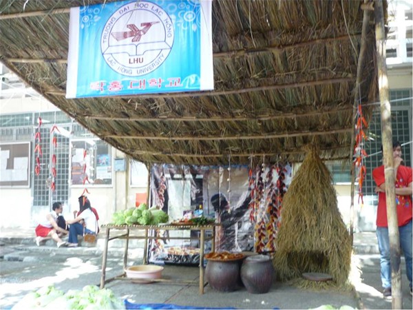 At the event, many cultural activities and game shows were held such as Korean calligraphy, folk games, Vietnamese – Korean traditional food, K-pop performance, camp decoration “Korean space”. Closing the festival, students of Lac Hong were awarded second prize of “K-STAR performance” and third prize of “Korean space” by the Organization Board.