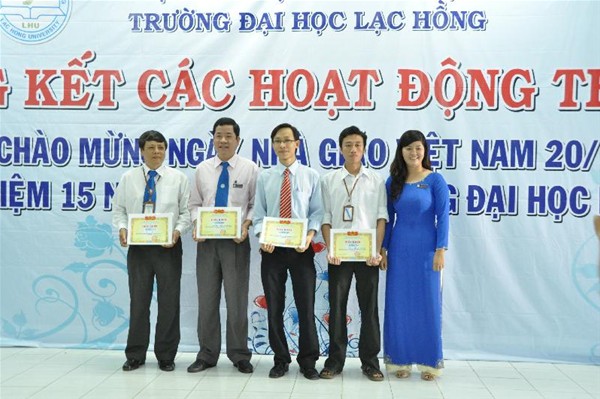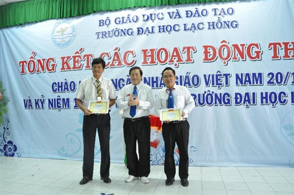 On the occasion of the 30th anniversary of Vietnamese Teachers’ Day (November 20, 1982 – November 20, 2012), a meeting was held on November 19, 2012 at A301 to sum up activities and to honor Teachers for their outstanding achievements by the Trade Union Executive Committee in cooperation with chapters. Earlier, a series of activities have been held in Lac Hong University to celebrate the Vietnamese Teachers’ Day and and mark the 15th founding anniversary of Lac Hong University.
