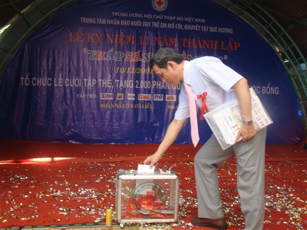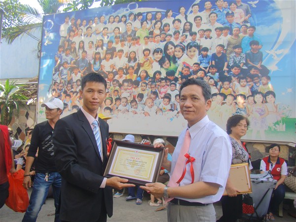 Presenting gifts to Que Huong Humanitarian Center