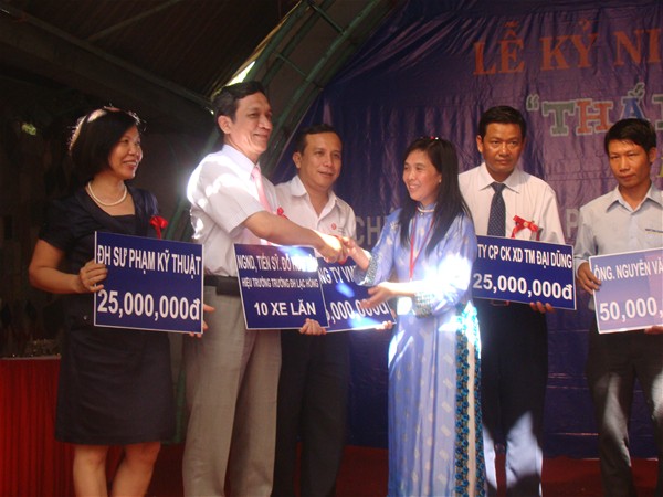 On the occasion of the 11th founding anniversary of Que Huong Humanitarian Center, Dr. Nguyen Van Nam on behalf of the university leadership donated money to raise for the charity fund of the center. In addition, On behalf of Rector People’s Teacher Dr. Do Huu Tai, he presented 10 wheelchairs worth VND 12 million to unfortunate children at the Que Huong Center.