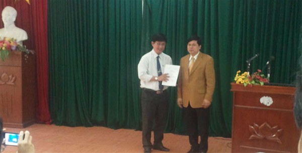 Chairman of Vietnam Mechatronics Community Do Huu Hao hands over the Decision to hold the 7th Vietnam Conference on Mechatronics 2014 to Lac Hong University.