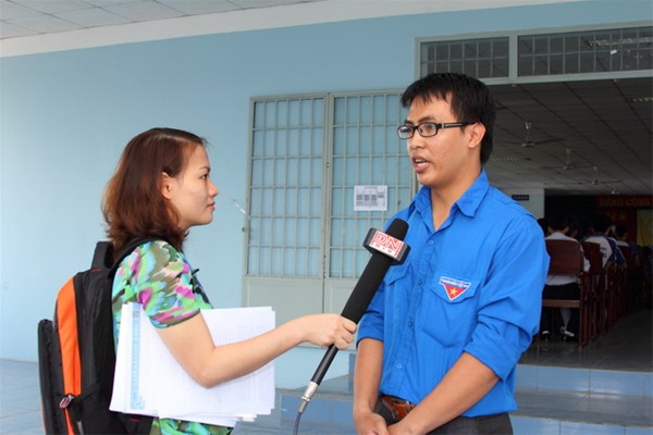 A representaive of the press interviews a Youth Union member.
