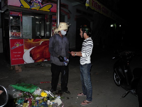 Presenting gift to a rubbish collector