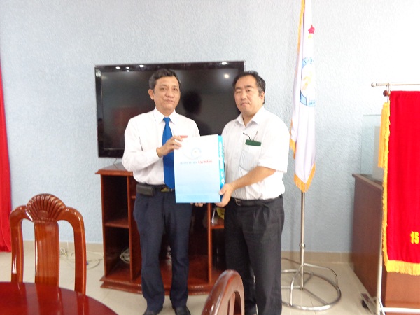 On behalf of the University Management Board, Vice Rector Nguyen Van Nam presents a souvenir gift to Mr. Shine Toshihiko