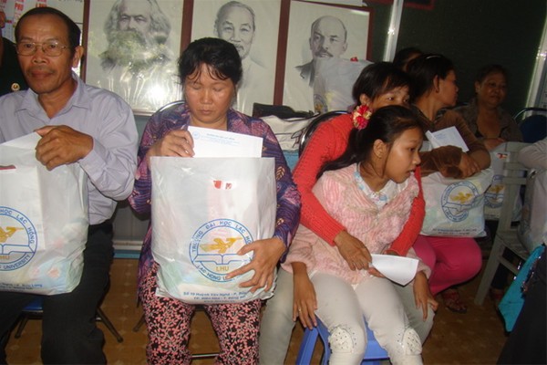 Earlier, LHU's Youth Union – Student Association handed over each gift including 20 kilos of rice, cooking oil, cakes,... equivalent VND 300,000 and VND 300,000 in cash to 20 AO/ dioxin victims in the second quarter.