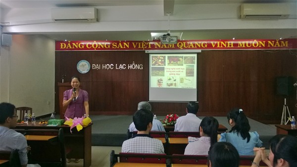 Recently, a seminar entitled "Biotechnology in teaching and production" was held at Room B 203, Campus 1 by LHU's Faculty of  Biotechnology and Environment. The seminar attracted the great participation of its teachers and students. On behalf of the Faculty Management Board, Le Thi Thu Huong, MSc - Vice Dean delivered an opening speech and mentioned development orientations of Biology branch and prospective applications.