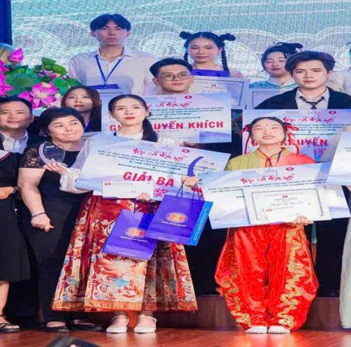 Không chỉ dừng lại ở phạm vi cấp trường, sinh viên Ngành Ngôn ngữ Trung Quốc – Trường Đại học Lạc Hồng còn liên tiếp gặt hái thành công tại nhiều cuộc thi uy tín. Tại Cuộc thi Lồng tiếng Hán ngữ mở rộng lần II năm học 2024–2025, tổ chức ngày 14/5/2025 tại Trường Đại học Văn Hiến (TP. Hồ Chí Minh), sinh viên Hoàng Thị Linh ( Lớp 23DT113) đã xuất sắc giành Giải Nhất, để lại ấn tượng tích cực với Ban Giám khảo.