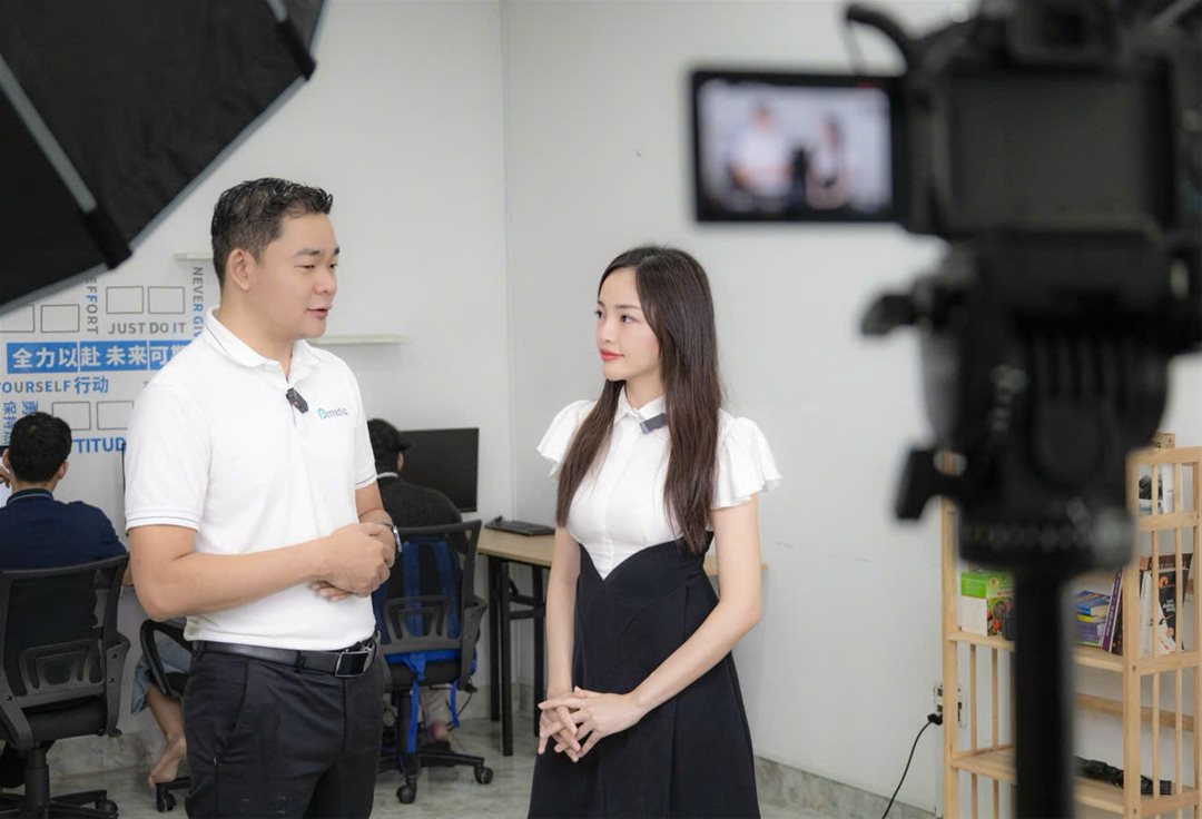 Phu is conducting an interview video with Ms. Nhu Ngoc, a lecturer in the Multimedia Communication program.