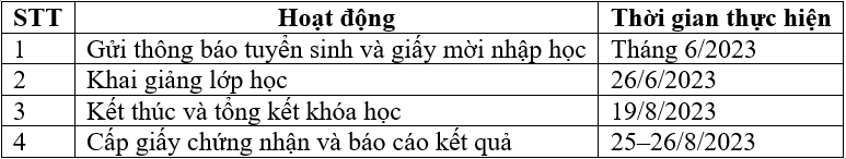 Thời gian học: Từ 26/6/2023 đến 19/8/2023
